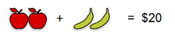 - Day 2: You bought two apples and two bananas and they cost $20.