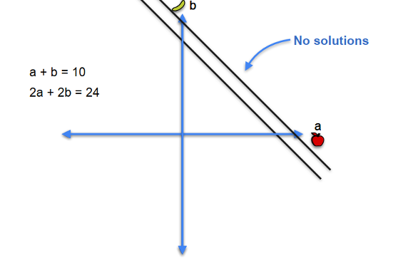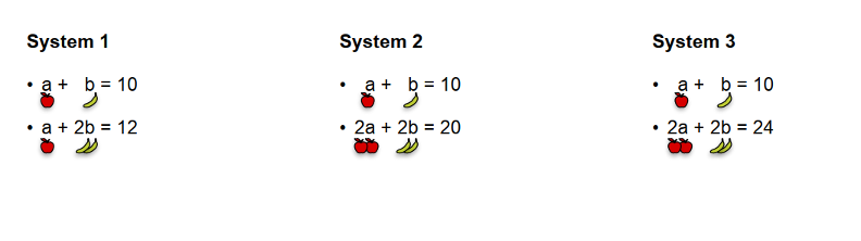 Bổ sung câu để đủ nghiệm duy nhất: “The apple costs twice the banana.” → a = 2b