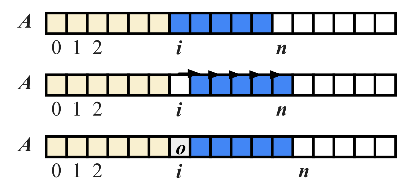 - Step 2: Shift all elements from index i to n−1 one position to the right