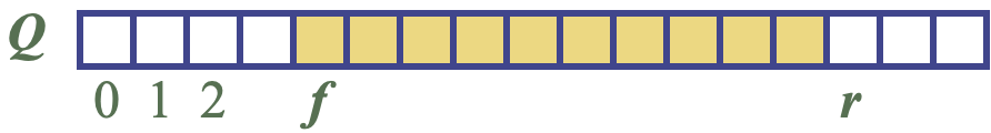 | Operation | Return Value | Queue (first <- Q <- last) |